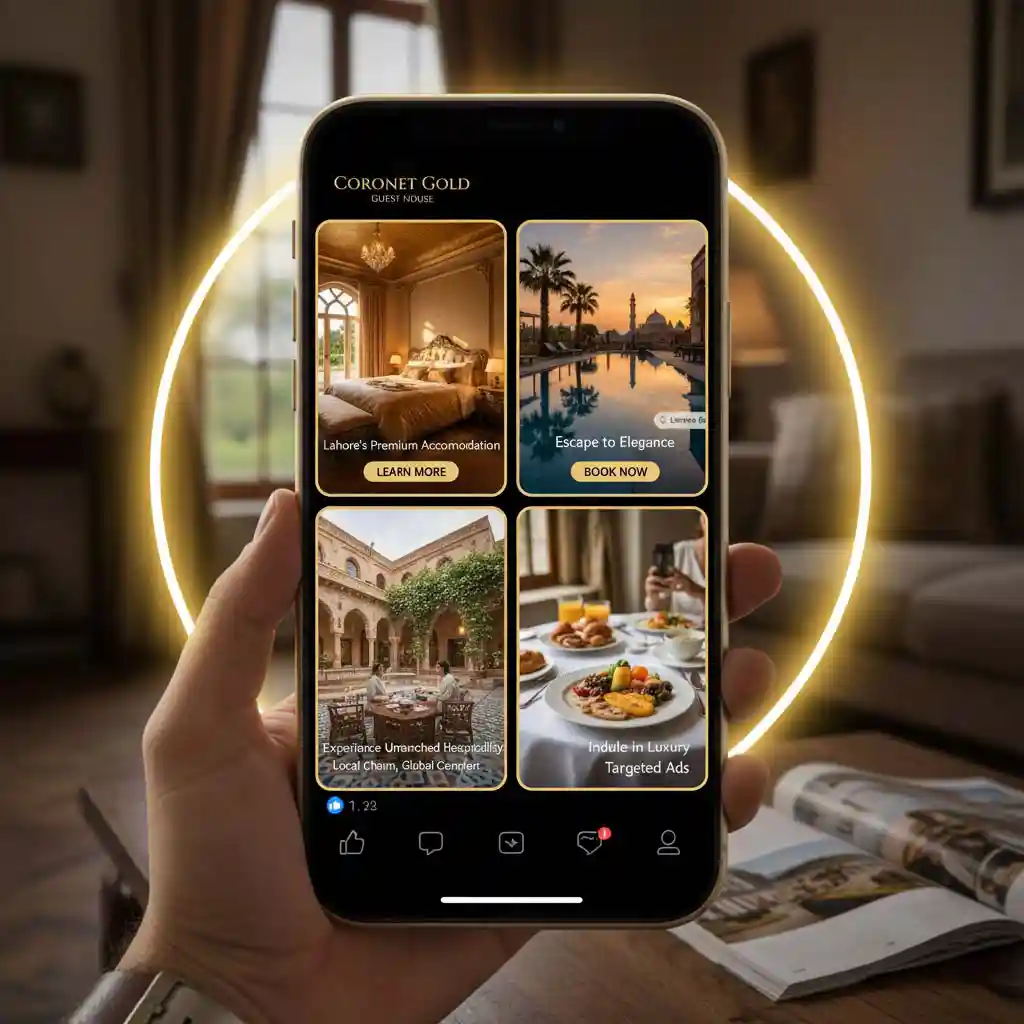 Our marketing strategy centered on reaching potential travelers and local clients looking for premium accommodation in Lahore. We launched targeted ad campaigns on Instagram and Facebook, utilizing stunning visuals from our photoshoots to capture attention. By focusing on location-based and interest-based targeting, we successfully drove a consistent stream of booking inquiries and increased brand awareness among a relevant audience.
